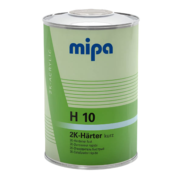 Mipa 2K H10 Fast Hardener is a fast-drying hardener for use with 2K (two-component) epoxy and polyurethane coatings. It is designed to be mixed with the appropriate 2K paint or coating to accelerate the drying and curing time. This product is typically used for industrial and commercial applications, where a fast-drying coating is desired. It can be used in conjunction with a range of 2K paints and coatings and is suitable for use on a variety of surfaces, including metal, wood, and concrete.