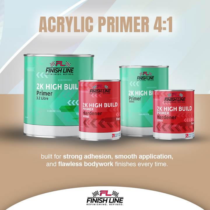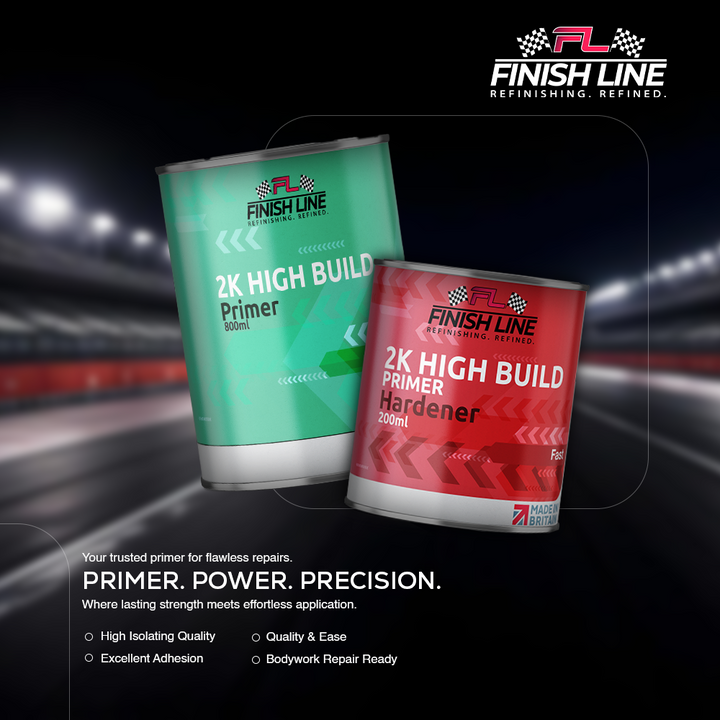 Our Finish Line 2K High Build Grey Primer is engineered for versatility and efficiency, delivering a smooth, even surface that’s ready for topcoat application. Designed to work seamlessly under 2K acrylic paints or basecoats, it adapts to air drying, low-bake ovens, and infrared curing systems. When paired with the matching Finish Line 2K High Build Hardener, it offers rapid curing, strong adhesion, and excellent filling capacity, making it suitable for everything from minor to spot repairs to full panel refinishing.