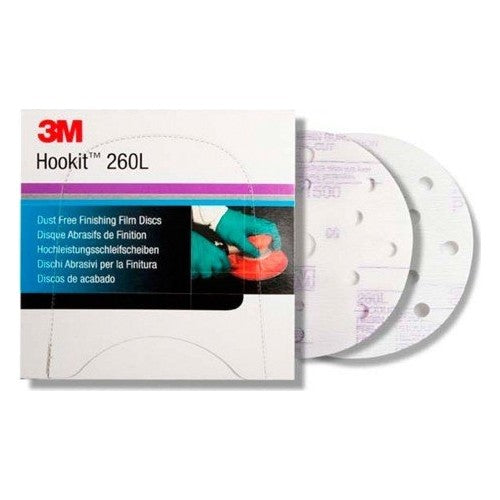 3M Hookit Film Disc 260L is ideal for auto body applications including blending, scuffing, paint prep, and removing paint defects. For automotive sanding applications requiring precision or fine finishes, use 3M Hookit Finishing Film Abrasive Disc 260L. Our discs combine durable film backing with fast‐cutting, long‐lasting aluminium oxide mineral abrasive. Aluminium oxide is a popular choice among industrial professionals because of its fast cut‐rate and long life. This mineral makes a tough, durable abrasive that self‐fractures to expose fresh cutting edges, whereas traditional natural abrasives dull more quickly. Available in a 15 or 7-hole pattern which helps keep dust from clogging the surface of the disc, significantly increasing cut‐rate and disc life. Our Hookit attachment system lets you quickly change the discs and reuse each one for the entire life of the product.