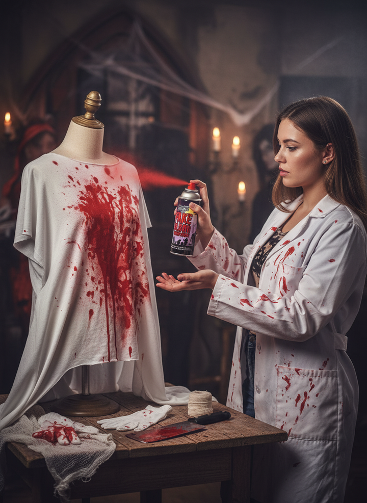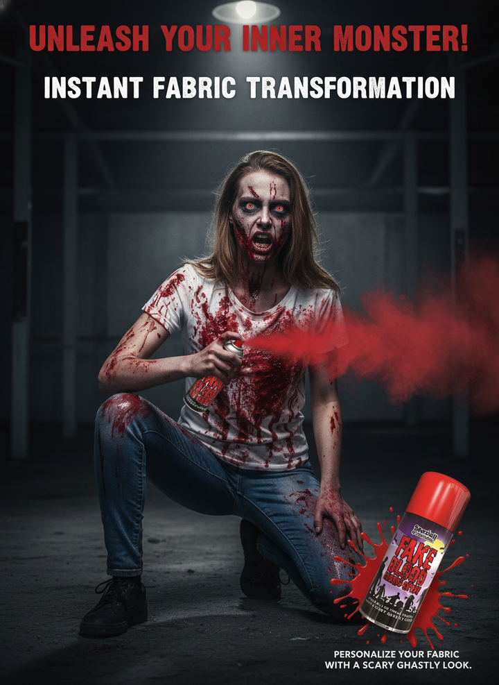 - Unleash your creativity and create a frightful masterpiece with our Halloween Fake Blood Fabric Spray. Order yours today and get ready to make a bloodcurdling statement this Halloween!