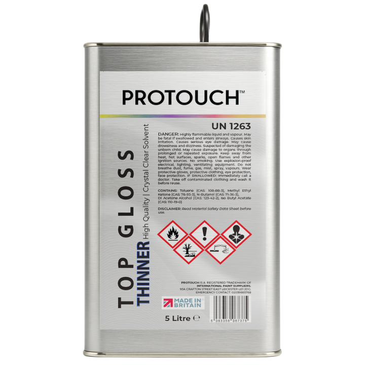 Our high quality Top Gloss Cellulose thinner can be used with cellulose car paints, 1K car paints, clearcoat, metallic paints, pearl paints and colour primers. This thinner can also be used for all paint cleaning purposes.