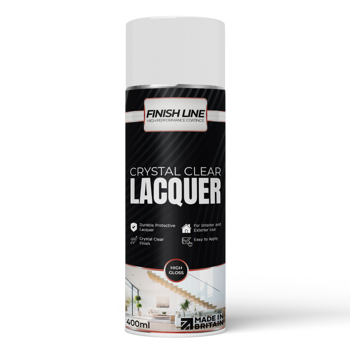 Transform your surfaces with Finish Line Crystal Clear Lacquer, a premium protective coating designed for both interior and exterior applications. This versatile 400ml aerosol delivers a stunning high-gloss finish that enhances and preserves your projects with crystal-clear brilliance. The fast-drying formula ensures minimal downtime, typically drying within 10-25 minutes, while offering superior scratch resistance for lasting durability. Perfect for various surfaces, this professional-grade lacquer provides a robust protective layer that maintains its clarity over time. The aerosol format ensures easy application, with consistent coverage when sprayed from the recommended 25mm distance. Made in Britain, this high-performance lacquer combines convenience with quality, making it an excellent choice for both DIY enthusiasts and professional users. The durable protection makes it ideal for high-traffic areas and surfaces that require a resilient, glossy finish. For best results, ensure surfaces are clean and dry before application, and shake thoroughly before use.
