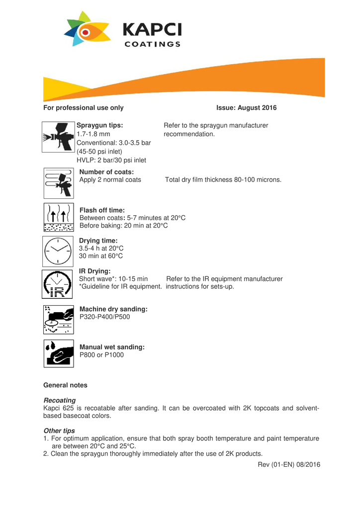 • Flash Off: 5-10 minutes at 20°C between coats