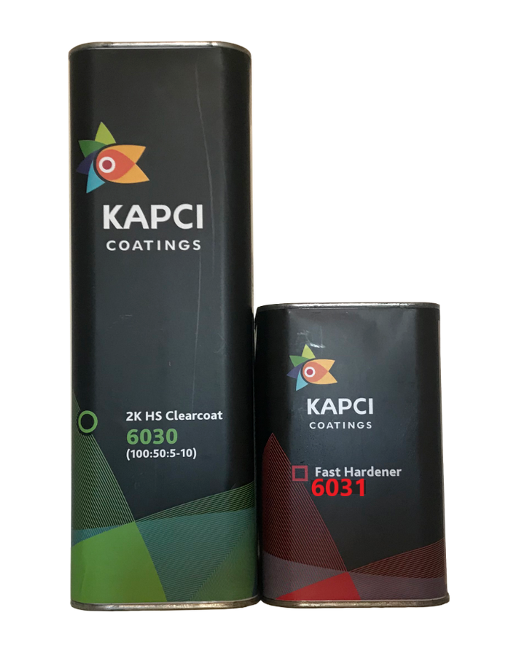 Kapci 6030 is 2K HS anti-scratch clearcoat suitable for repair of all kind of vehicles. It delivers high gloss and long lasting resistance. It is used with Kapci hardeners to give optimal performances and final finish.