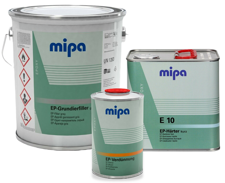 Mipa EP Grundierfiller Epoxy Primer Grey + E10 Hardener + EP Thinner 8.5 Litre Kit