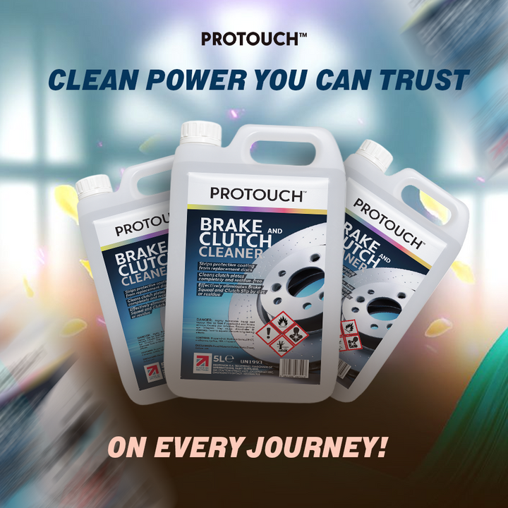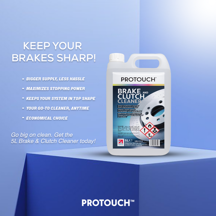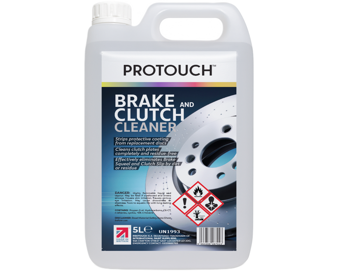 Protouch Brake and Clutch Cleaner is a professional-grade automotive maintenance solution designed for superior cleaning performance. This powerful 5L solvent efficiently removes protective coatings from new brake discs and thoroughly cleans clutch plates, leaving no residue behind. The fast-evaporating formula effectively eliminates brake squeal and clutch slip by removing oil, grease, dirt films, and other contaminants that can compromise vehicle safety and performance. Perfect for both professional mechanics and automotive enthusiasts, this versatile cleaner is specifically formulated to tackle stubborn deposits on brake components, clutch assemblies, and other metal parts. The generous 5-litre container provides excellent value for busy workshops and garages. For optimal results, apply the cleaner to the target area and allow it to evaporate completely before reassembly. Note: Always follow proper safety protocols and refer to material safety data sheets when handling this product.